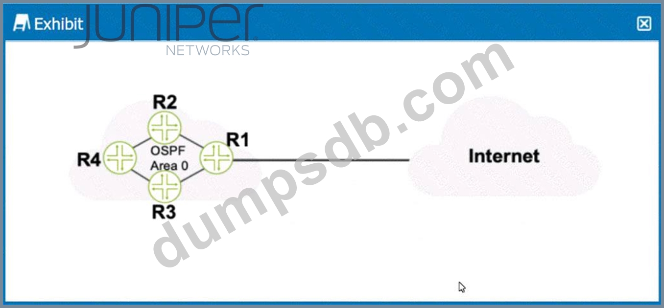 Referring to the exhibit, what should be configured on R1 to advertise a default static route into OSPF?
