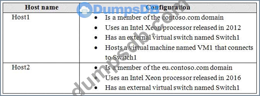 You plan to implement live migration between two Hyper-V hosts that run Windows Server 2016. The hosts are configured as shown in the following table.