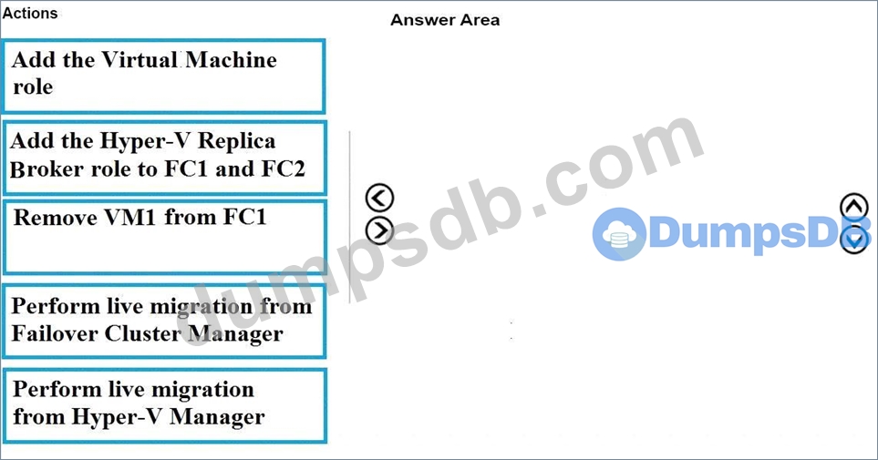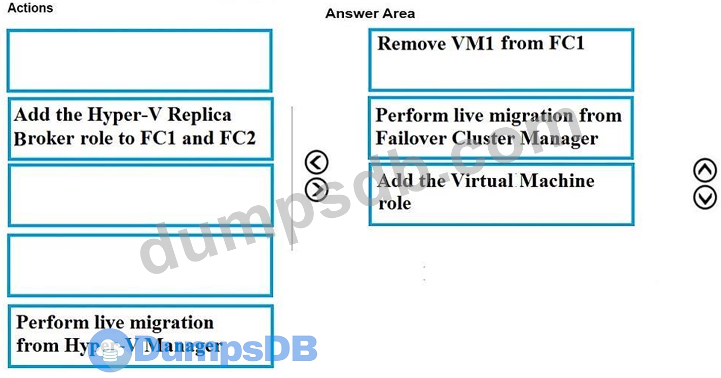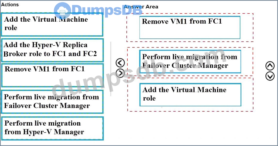 You need to move VM1 from Server1 to Server3 by using live migration.