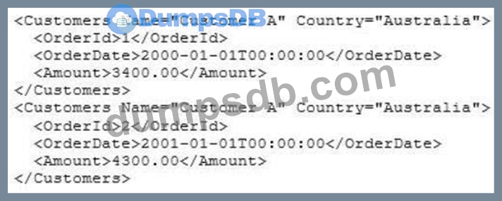 You need to display rows from the Orders table for the Customers row having the CustomerId value set to 1 in the following XML format.