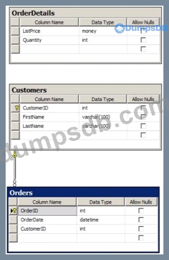You have a database named Sales that contains the tables shown in the exhibit. (Click the Exhibit button).