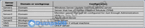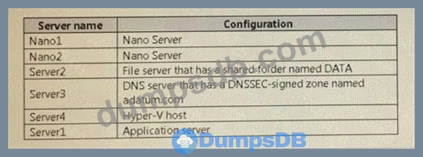 The network contains an Active Directory domain named contoso.com. The domain contains the servers configured as shown in the following table.
