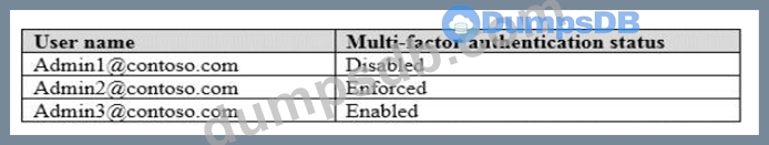 You configure the multi-factor authentication status for three users as shown in the following table.