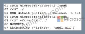 You plan to create an image that will contain a .NET Core application.