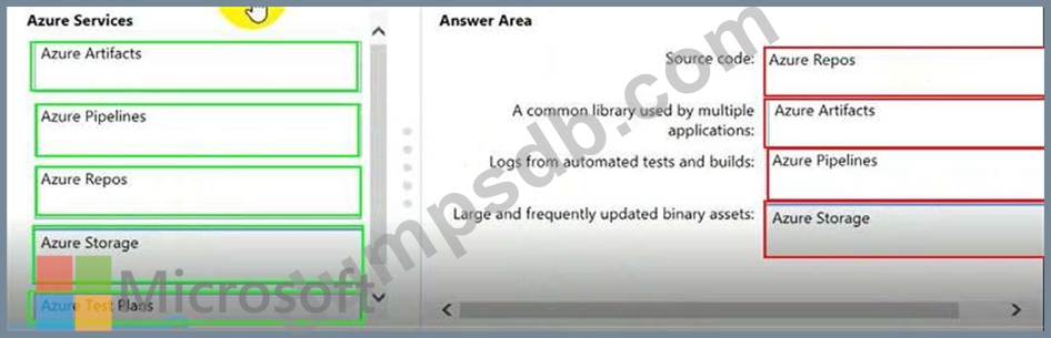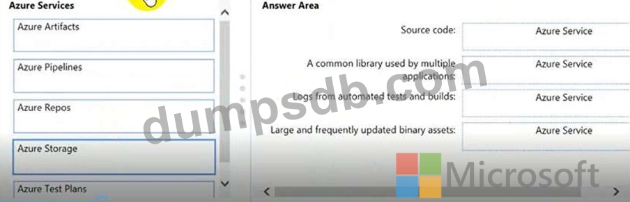 Where should you store each asset? To answer, drag the appropriate Azure services to the correct assets. Each service may be used once. You may need to drag the split bar between panes or scroll to view content.