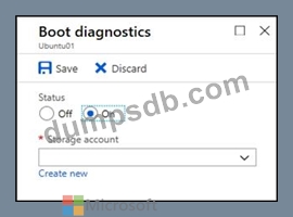 You need to create and configure an Azure Storage account named az400lod11566895stor in a resource group named RG1lod11566895 to store the boot diagnostics for a virtual machine named VM1.