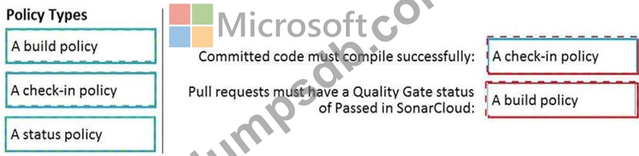 Which policy type should you configure for each requirement? To answer, drag the appropriate policy types to the correct requirements. Each policy type may be used once, more than once, or not at all. You may need to drag the split bar between panes or scroll to view content.