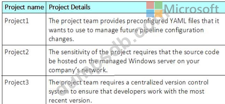 You are configuring Azure Pipelines for three projects in Azure DevOps as shown in the following table.