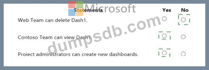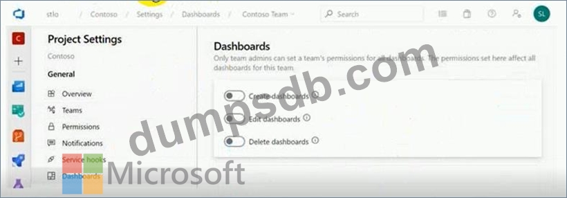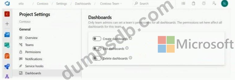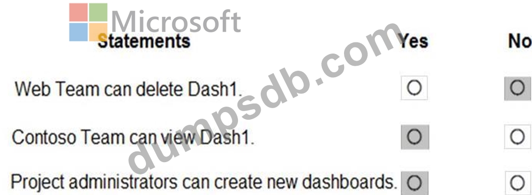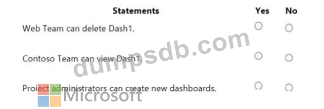 You configure the dashboard permissions for the Contoso project as shown in the Permissions exhibit (Click the Permissions tab.)