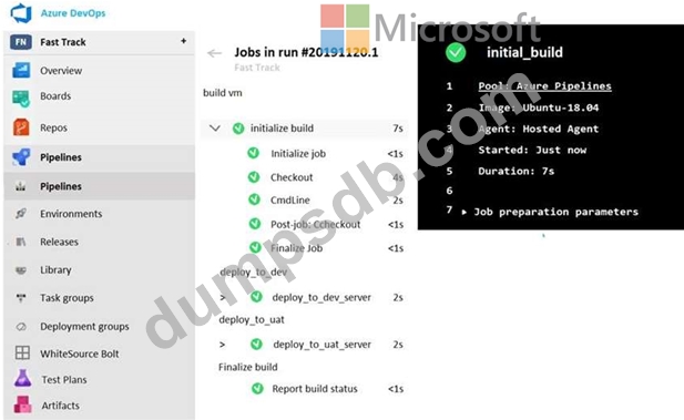 You execute a pipeline and receive the results in the web portal for Azure Pipelines as shown in the following exhibit.