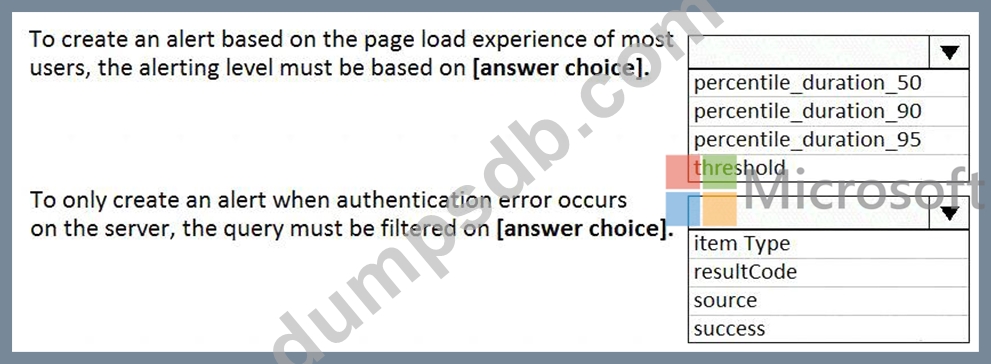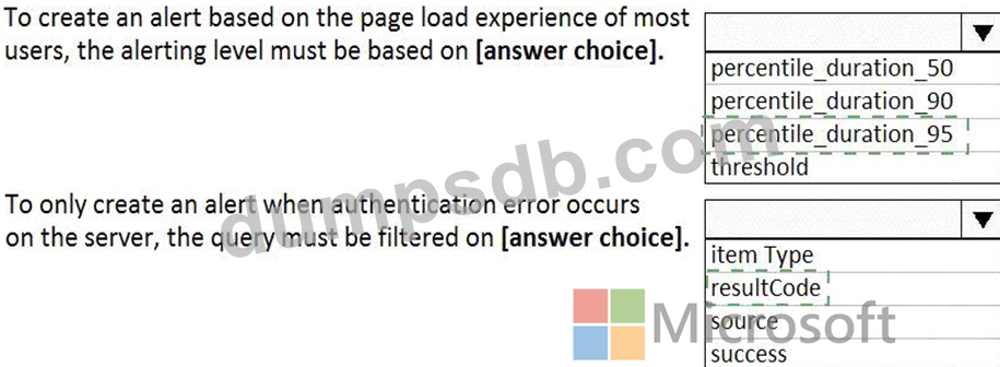 You plan to create alerts that will be triggered based on the page load performance ofa home page.