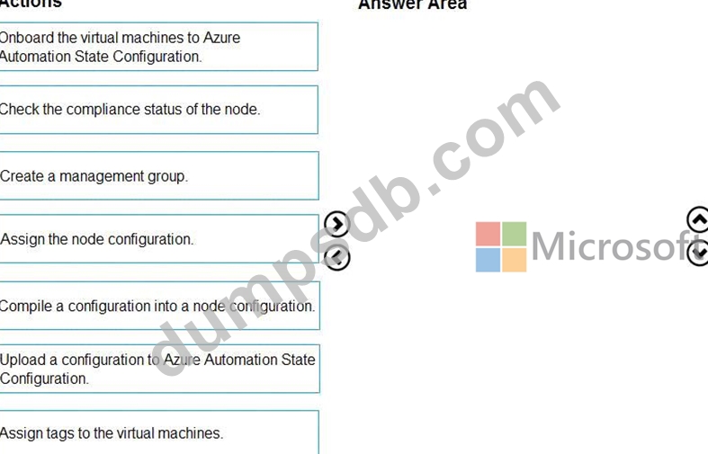 Which five actions should you perform in sequence? To answer, move the appropriate actions from the list of actions to the answer area and arrange them in the correct order.
