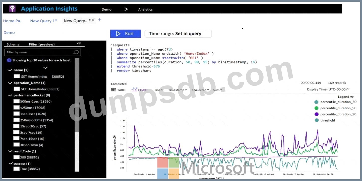 You have the Application Insights log query shown in the following exhibit.