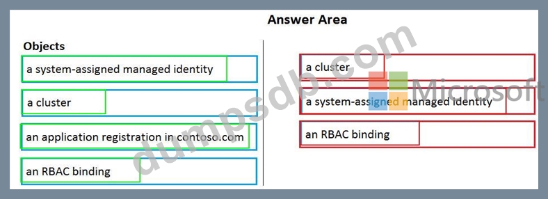Which three objects should you create in sequence? To answer, move the appropriate objects from the list of objects to the answer area and arrange them in the correct order.