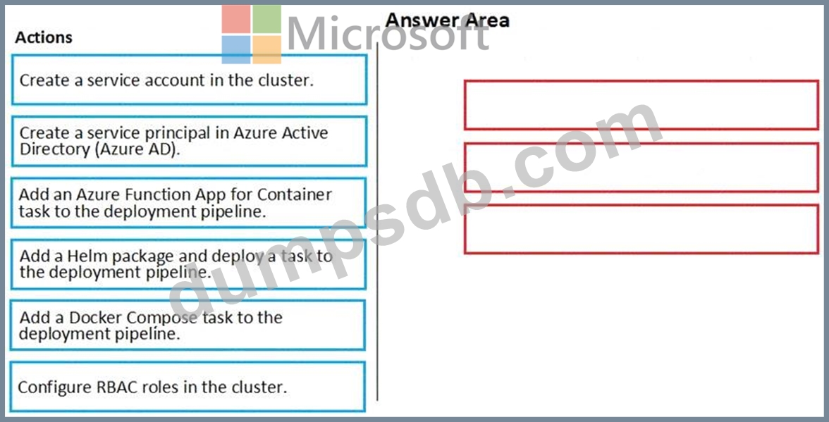 Which three actions should you perform in sequence? To answer, move the appropriate actions from the list of actions to the answer area and arrange them in the correct order.