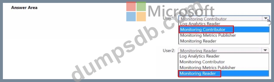 Which role should you assign to each user? To answer select the appropriate options in the answer area.
