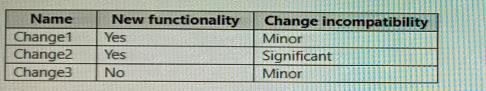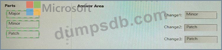 Which part of the version should you increment for each change? To answer, drag the appropriate parts to the correct changes. Each part may be used once, more than once, or not at all. You may need to drag the split bar between panes or scroll to view content.