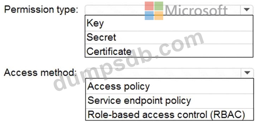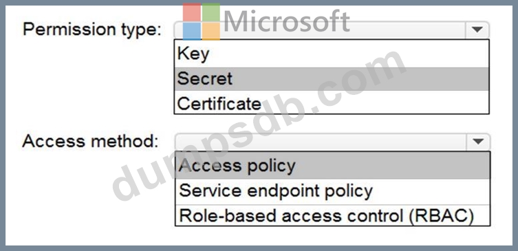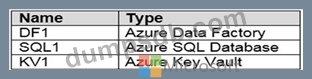 You need to configure DF1 to retrieve the password when the data factory connects to SQL1. The solution must use the principle of least privilege.