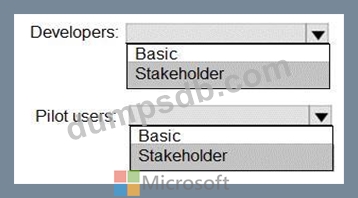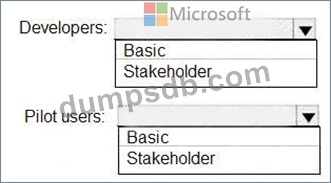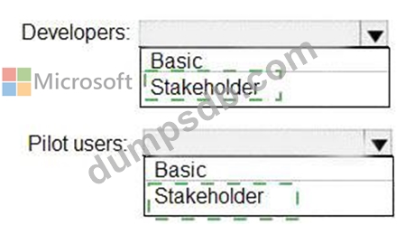 You need to identify which access levels are required to ensure that developers can request and gather feedback from the pilot users. The solution must use the principle of least privilege.