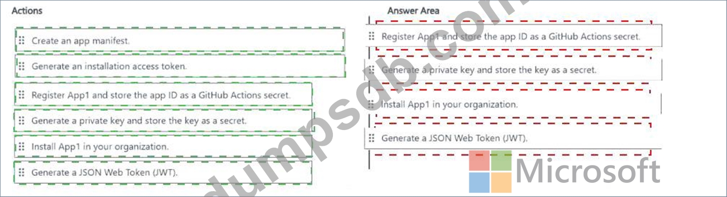 Which four actions should you perform in sequence? To answer, move the appropriate actions from the list of actions to the answer area and arrange them in the correct order.