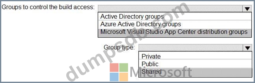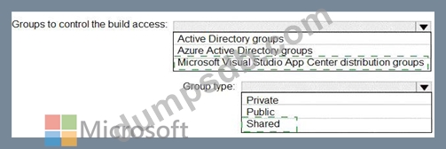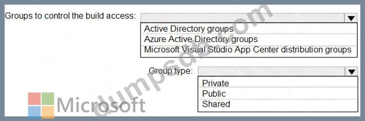 You need to controlaccess to the application builds. The solution must be managed at the organization level What should you use? To answer, select the appropriate options m the answer area.