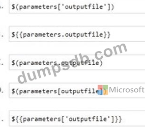 You are designing a YAML template for use with Azure Pipelines. The template Will include theOutputfile parameter.