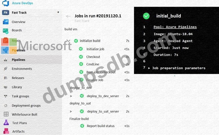 You execute a pipeline and receive the results in the web portal for Azure Pipelines as shown in the following exhibit.