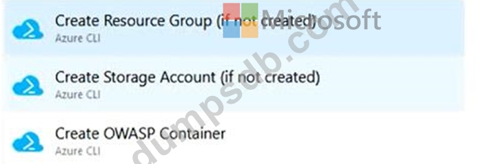 Which five Azure CLI tasks should you add in sequence? To answer, move the tasks from the list of tasks to the answer area and arrange them in the correct order.