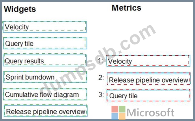 Which widget should you use for each metric? To answer, drag the appropriate widgets to the correct metrics.