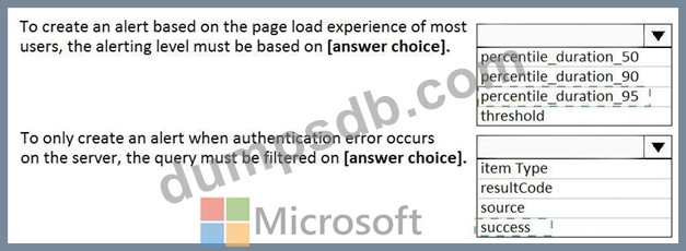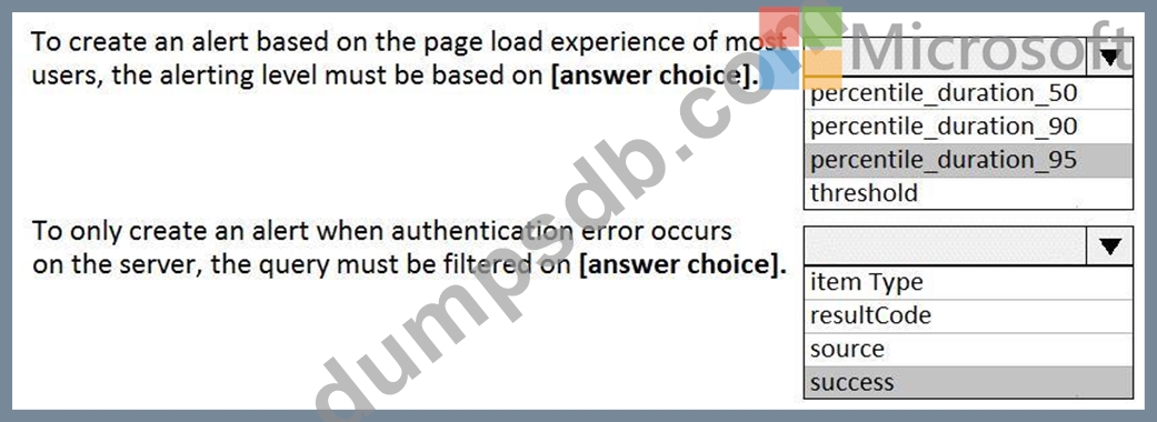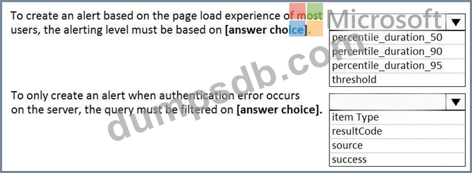 You plan to create alerts that will be triggered based on the page load performance of a home page.