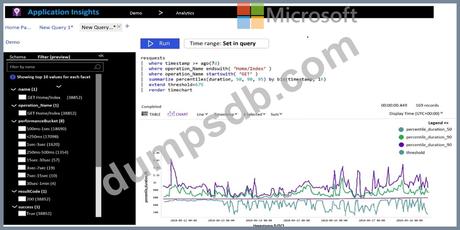 You have the Application Insights log query shown in the following exhibit.