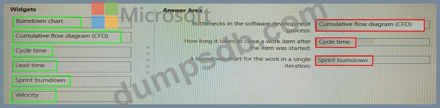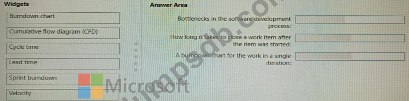 Which type of widget should you use for each metric? To answer, drag the appropriate widget types to the correct metrics. Each widget type may be used once, more than once, or not at all. You may need to drag the split bar between panes or scroll to view content.