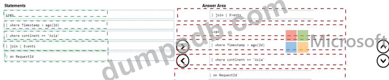 In which order should you arrange the query statements? To answer, move all statements from the list of statements to the answer area and arrange them in the correct order.