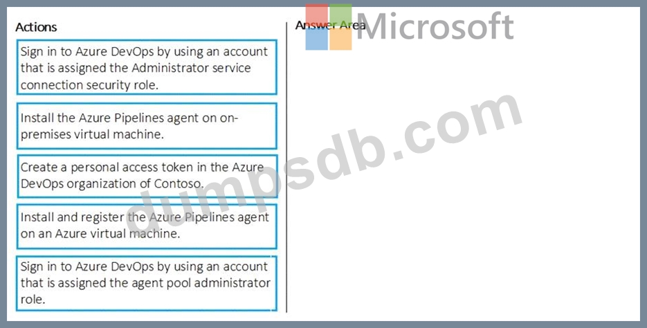 Which three actions should you recommend be performed in sequence? To answer, move the appropriate actions from the list of actions to the answer area and arrange them in the correct order.