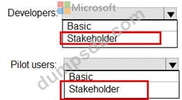 You need to identify which access levels are required to ensure that developers can request and gather feedback from the pilot users. The solution must use the principle of least privilege.