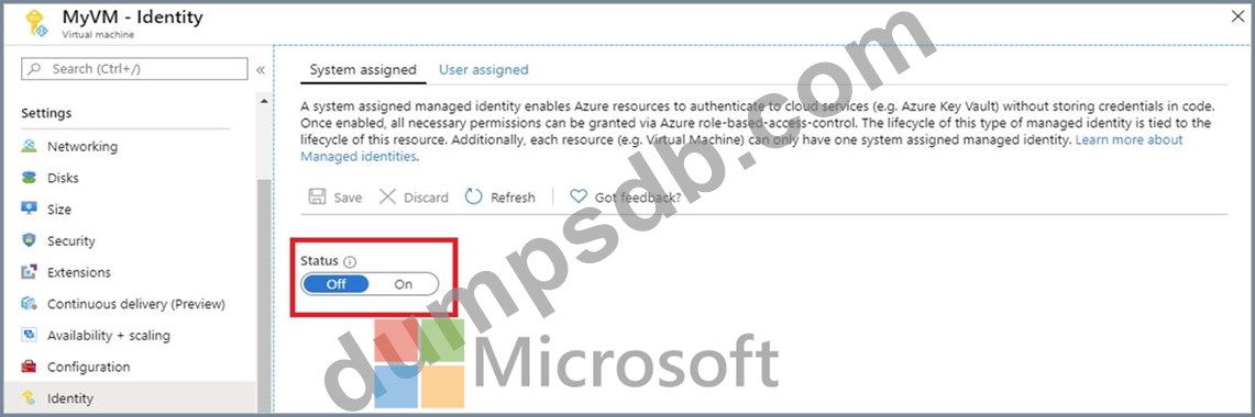 You need to configure a virtual machine named VM1 to securely access stored secrets in an Azure Key Vault named az400-11566895-kv.