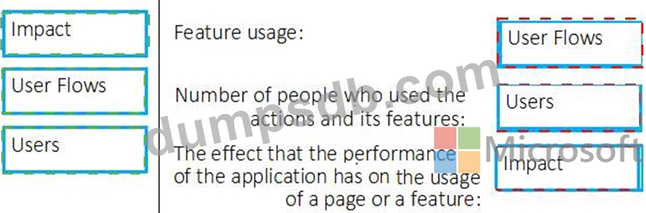 Which Application Insights tool should you use to analyze each behavior? To answer, drag the appropriate tools to the correct behaviors. Each tool may be used once, more than once, or not at all. You may need to drag the split bar between panes or scroll to view content.