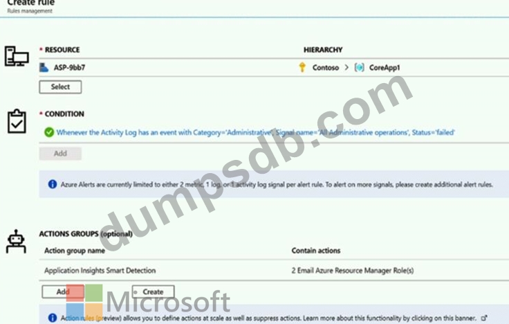 You create an alert rule in Azure Monitor as shown in the following exhibit.