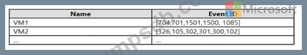 You need to identify the distinct event IDs of each virtual machine as shown in the following table.