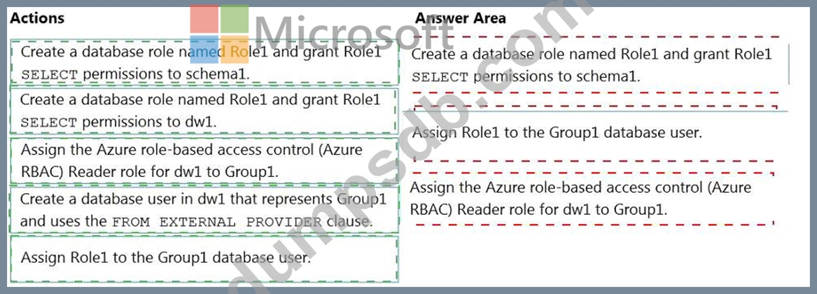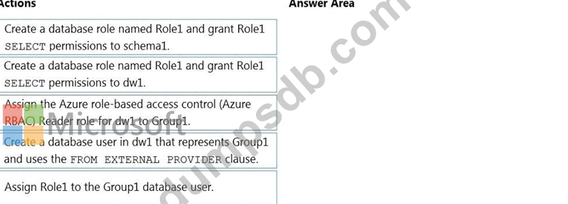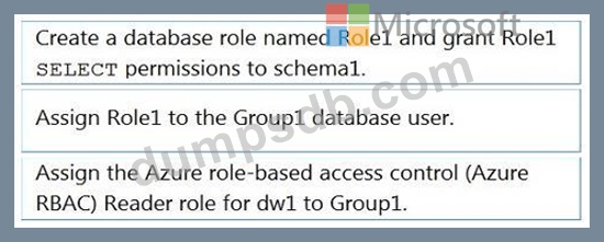 You have an Azure Active Directory (Azure AD) tenant that contains a security group named Group1. You have an Azure Synapse Analytics dedicated SQL pool named dw1 that contains a schema named schema1.