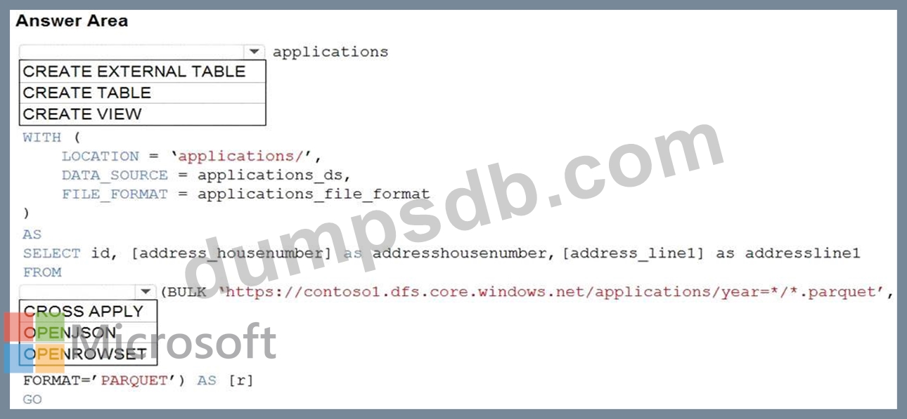 How should you complete the Transact-SQL statement? To answer, select the appropriate options in the answer area.