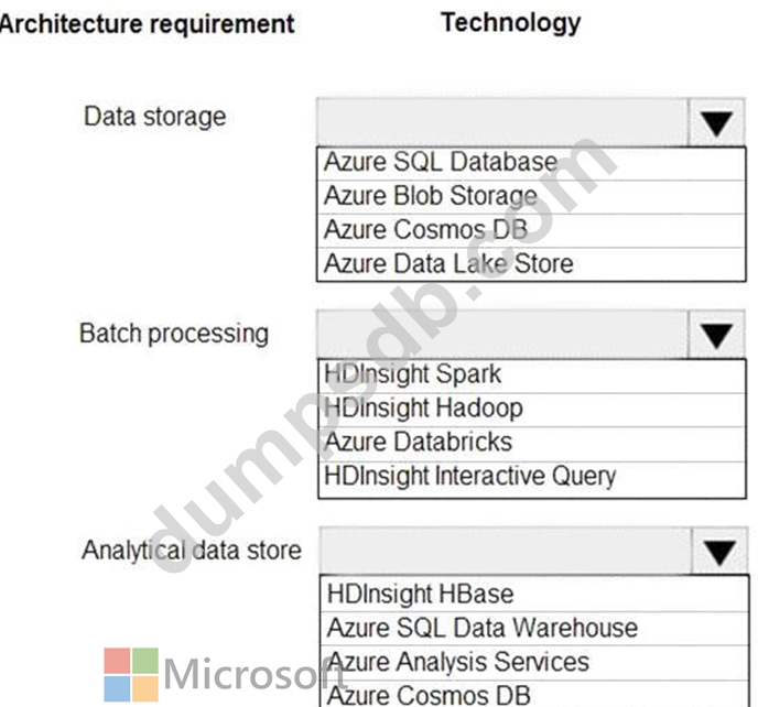Which technologies should you use? To answer, select the appropriate options in the answer area NOTE: Each correct selection is worth one point.