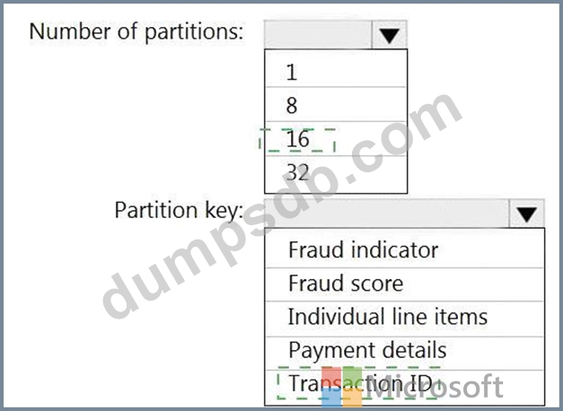 You are designing an Azure Stream Analytics job to identify potentially fraudulent transactions at a retail store. The job will use retailhub as the input. The job will output the transaction ID, the individual line items, the payment details, a fraud score, and a fraud indicator.