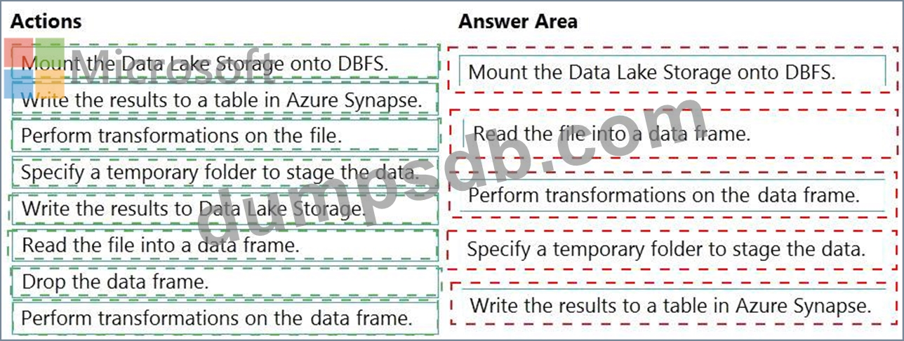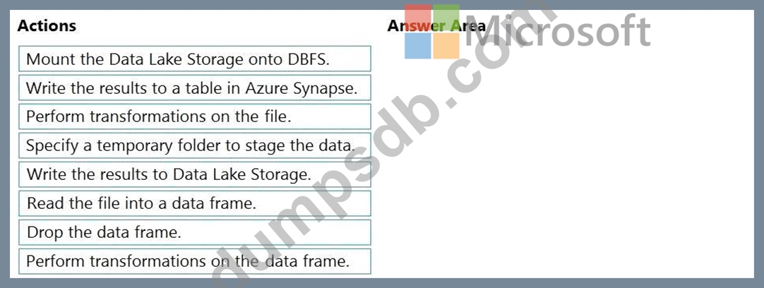 Which five actions should you perform in sequence next in is Databricks notebook? To answer, move the appropriate actions from the list of actions to the answer area and arrange them in the correct order.