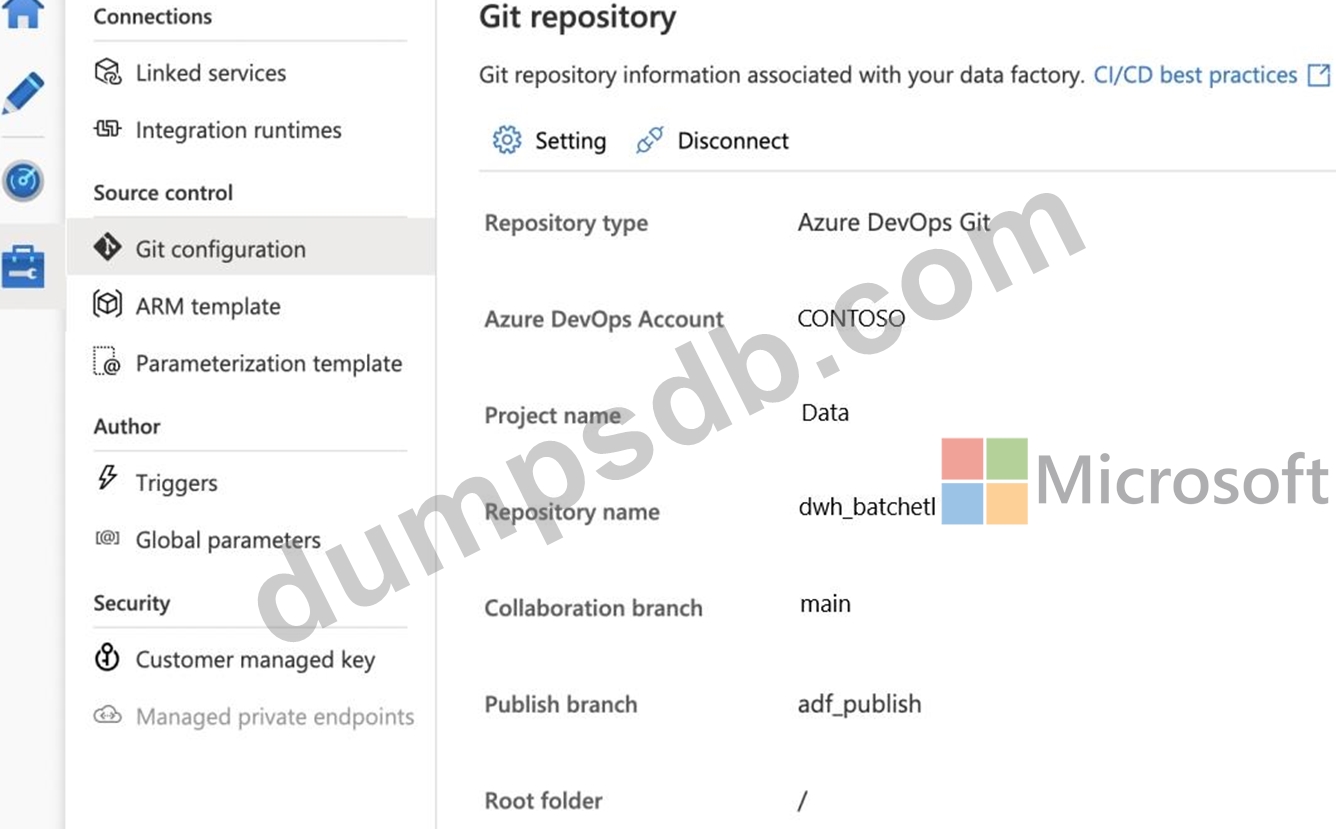 You configure version control for an Azure Data Factory instance as shown in the following exhibit.