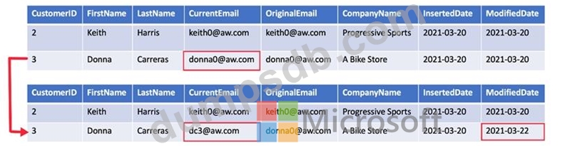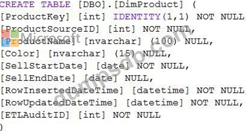 You need to implement a Type 3 slowly changing dimension (SCD) for product category data in an Azure Synapse Analytics dedicated SQL pool.