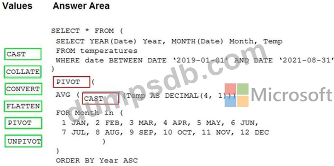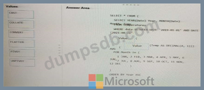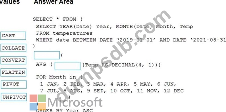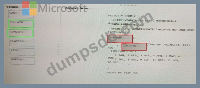 How should you complete the query? To answer, drag the appropriate values to the correct targets. Each value may be used once, more than once, or not at all. You may need to drag the split bar between panes or scroll to view content.