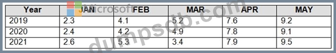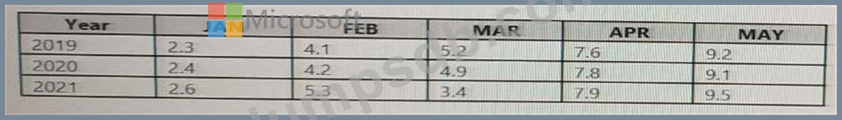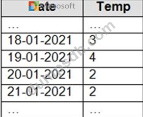You have an Apache Spark DataFrame named temperatures. A sample of the data is shown in the following table.