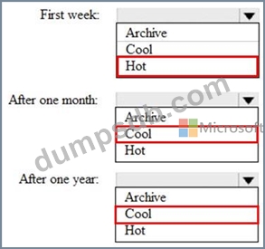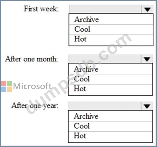 Which storage tier should you use for each time frame? To answer, select the appropriate options in the answer area.