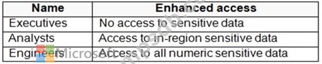 Groups will have access to sensitive data in the pool as shown in the following table.